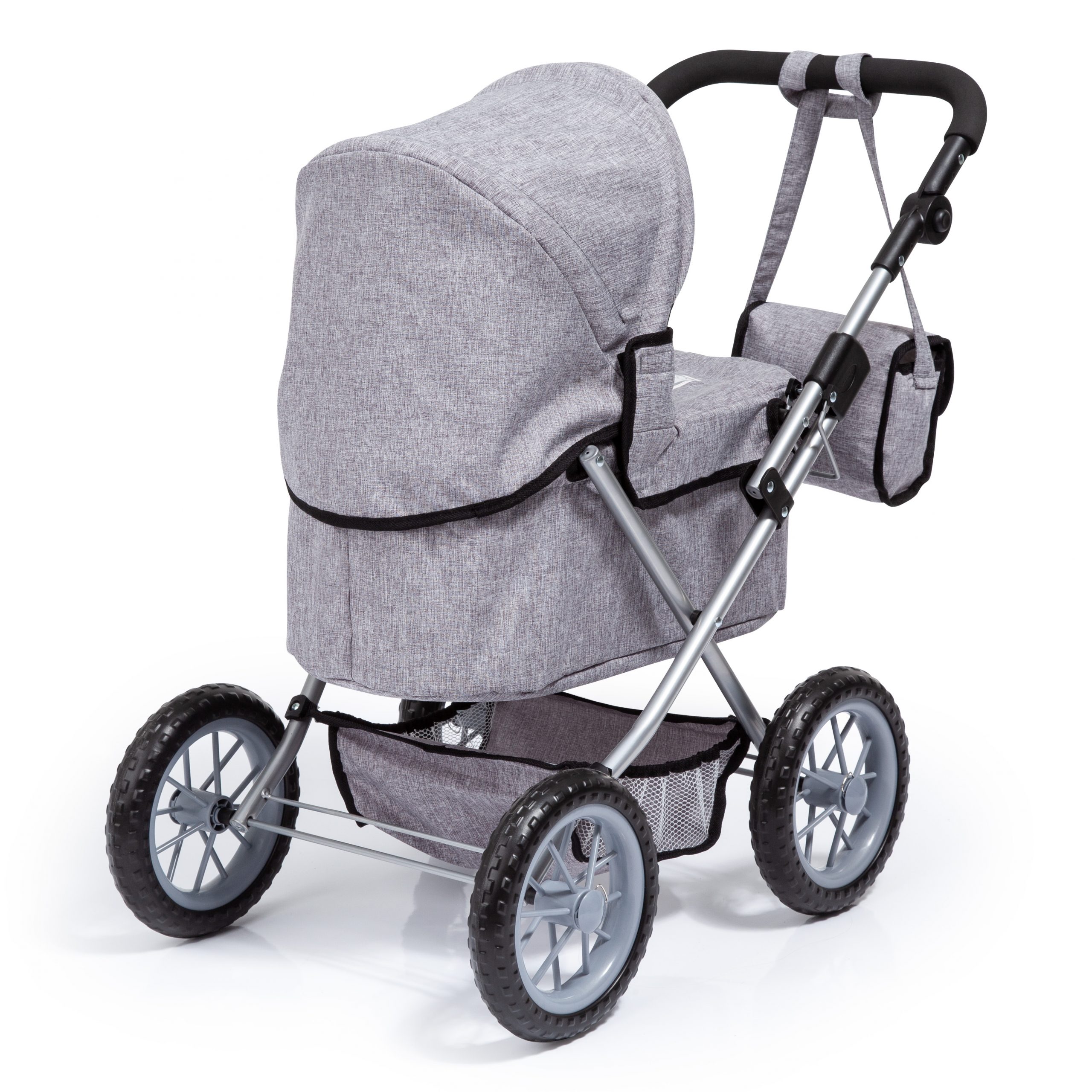 Trendy es un precioso cochecito para muñecas, de colores modernos, apto para muñecas de hasta 46 cm. Gracias a su asa ajustable, este cochecito es ideal incluso para niñas pequeñas. Además, se pliega rápidamente para facilitar su transporte. La cesta integrada permite guardar todo lo necesario para un viaje con la mamá de la muñeca y su pequeño. Se entrega en una bonita caja de presentación. Altura del asa (cm): 39-68. Medidas del producto (cm): 67 x 41 x 68.
